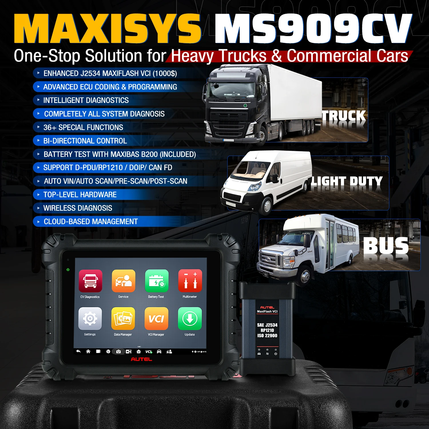 Autel Scanner For Trucks And Commercial Cars Maxisys Ms909cv Diagnostic Tool With J2534 Ecu Programming Vci Battery Tester Diagnostic Tools Aliexpress